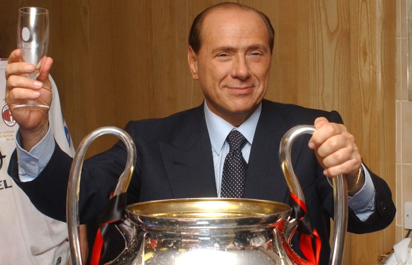 Berlusconi comprou o Milan em 1986, quando o clube enfrentava grave crise financeira e não vencia um título nacional desde o final da década anterior. Com as contratações do badalado técnico Arrigo Sacchi e dos craques holandeses Marco van Basten, Ruud Gullit e Frank Rijkaard, além da revelação dos jovens Paolo Maldini e Carlo Ancelotti, o Milan se tornou referência na Europa ao vencer três vezes a Copa dos Campeões (atual Champions League), duas vezes o Mundial e diversos outros títulos na Itália. O sucesso do time ajudou a catapultar o nome de Berlusconi, que assumiu o cargo de premiê em 1994, ficando até 2011.
