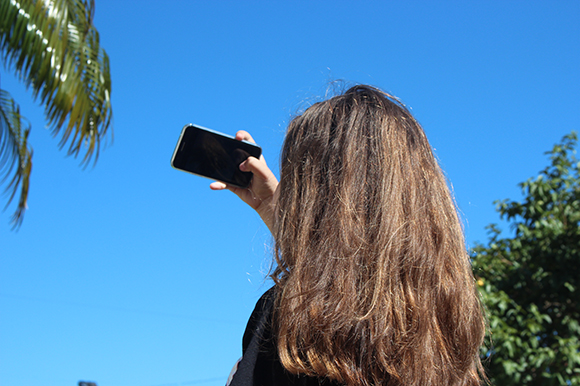 Pela tela de um celular emprestado, a pequena Eduarda, de apenas dez anos, vê uma nova forma de enxergar o mundo. Ela que tanto gostava de aparecer nas fotografias, aprendeu também a gostar de fabricá-las. Com o dedinho sobre a tela touchscreen ela registra plantas, paisagens e um céu azul, que vai editar depois, com uma saturação bem forte, como gosta. Assim a menina sorridente e conversadora fez com a foto que intitulou “A Anatomia da Bolha”, sua favorita da exposição aberta nesta terça-feira, 9, no Centro de Cultura Jornalista Francisco José Frantz, antiga Estação Férrea no Centro de Santa Cruz do Sul.