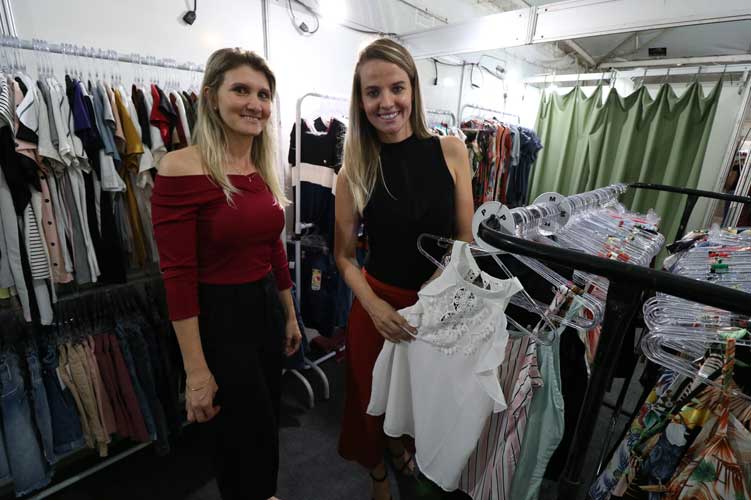 Proprietárias da loja Cheia de Graça, Roberta Weis e Diana Hirsch participam pelo quarto ano da feira. Além do espaço entre os expositores, elas estarão no desfile de modas na noite de hoje. Contam que geralmente viajam duas ou três semanas antes da festa para adquirir os produtos que oferecem durante a Exposin e garantem que têm ótimo retorno, tanto dos visitantes locais como de outros municípios. Além das vendas, afirmam que aproveitam para se divertir nos bailes.