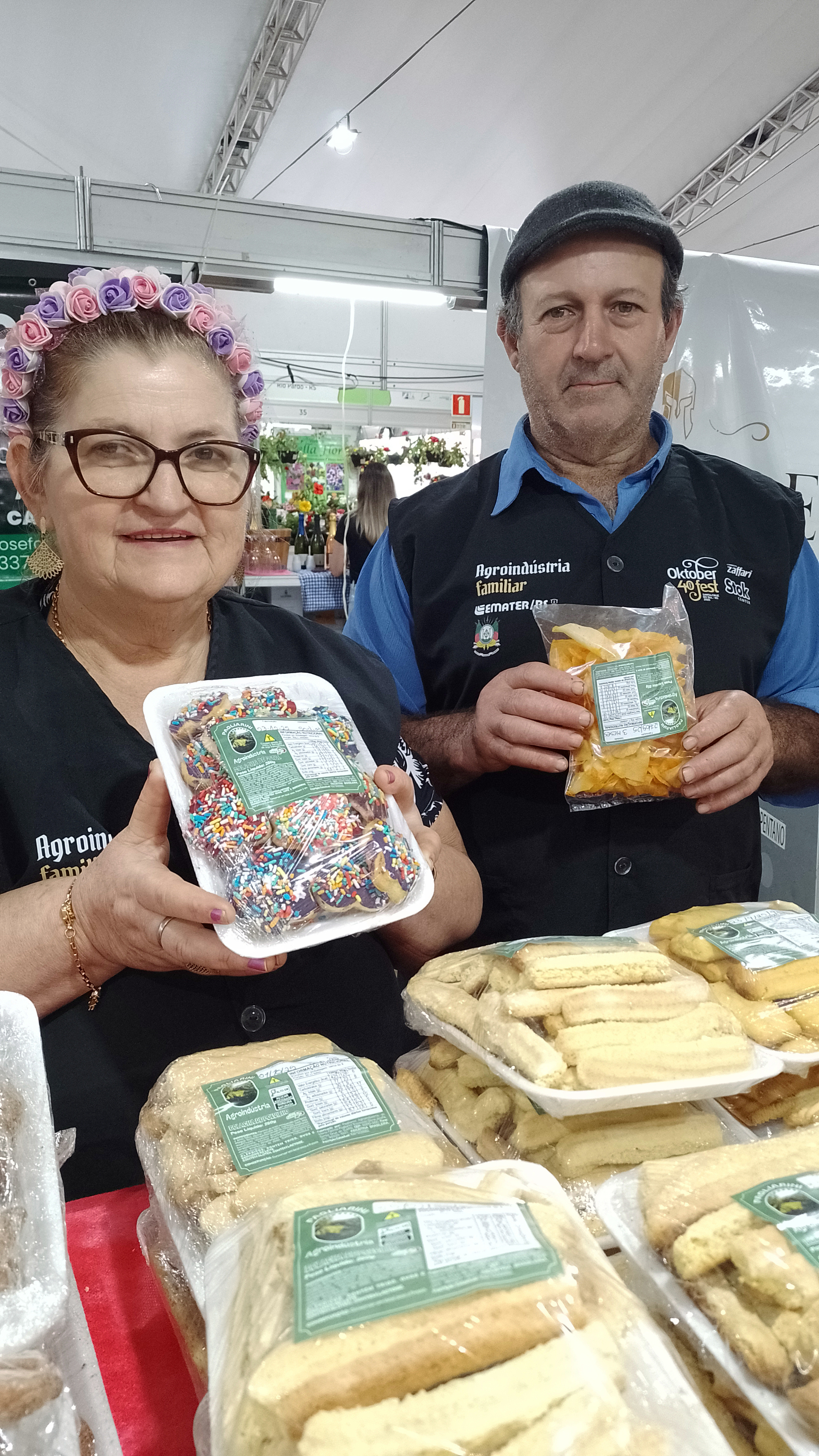A mesma impressão positiva tiveram os expositores estreantes Leonel e Maria Fátima Pagliarin, da Pagliarin Agroindústria, de Travessão Dona Josefa, em Santa Cruz. O casal levou rocambole, bolacha caseira, cueca virada e chips de aipim.