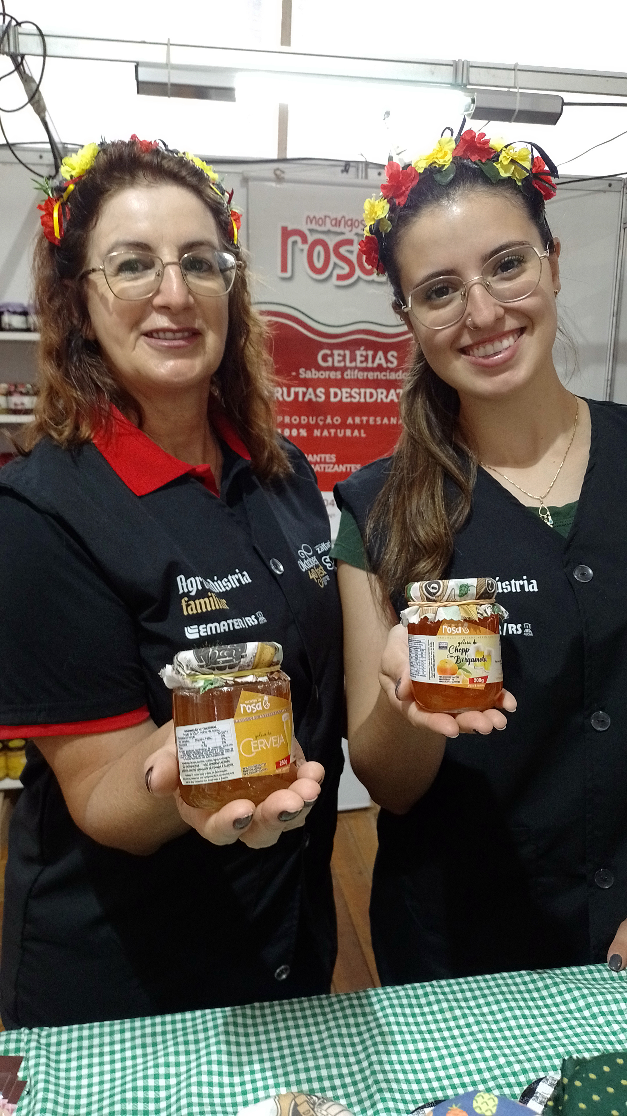 É o caso de Rosa e Stéfani Harthmann, mãe e filha, do município de Cristal, no Sul do Estado. Expondo desde 2021, a convite da Emater, elas levaram geleias e doce de leite. “A cada ano tentamos trazer uma novidade. Nesse, trouxemos doce de leite sem açúcar e geleia de cerveja”, disse Rosa.