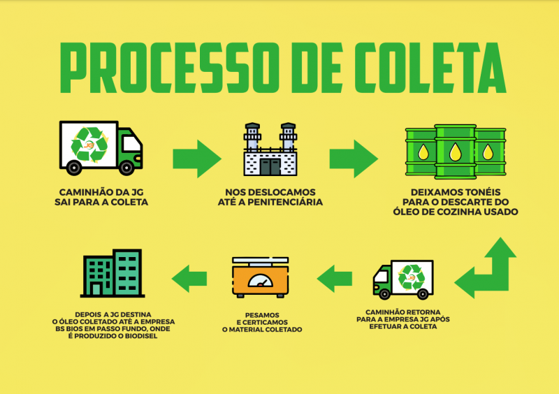 Outra opção para o descarte correto do óleo de cozinha utilizado nas unidades prisionais são as parcerias com instituições e empresas de reciclagem, que coletam o material para transformar em sabão, detergente, vela e biocombustível.