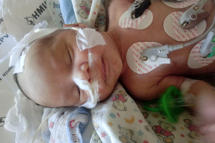 “Levamos ele no Hospital Centenário onde chegou com 44 de saturação, quase morto. Foi internado e botaram ele no oxigênio, mas não havia vaga para ele na UTI.” Um teste de Covid-19 realizado no bebê deu negativo. Ele foi encaminhado para o Presidente Vargas onde foi diagnosticado com vírus sincicial respiratório (VSR) e bronquelite, foi colocado no aparelho respiratório SiPAP e está fazendo tratamento com injeções e antibiótico, além de se alimentar com sonda.