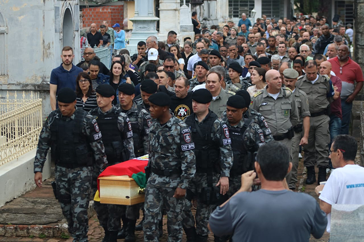 Muito emocionado, o comandante do Comando Regional de Polícia Ostensiva do Vale do Rio Pardo (CRPO/VRP), tenente-coronel Valmir José dos Reis, fez uma fala durante o enterro. “Quando Kappel se aposentou eu disse: eu vou trazer tua filha e ela vai pro teu lugar. Ela quis seguir os passos dele no POE e estava fazendo isso agora. Alguns partem com desonra, outros partem com honra e glória, é o caso da Marciele, que parte no cumprimento do dever. Marciele parte com glória porque fazia o que gostava em defesa da sociedade. Enquanto todos fogem do perigo, nos vamos em direção a ele. De tão acostumados que estamos com o risco, não avaliamos mais, porque o nosso compromisso com a sociedade é maior”, disse. Reis também agradeceu a força de todas as forças policiais e destacou que este foi o sexto caso de policial militar morto em 2019.