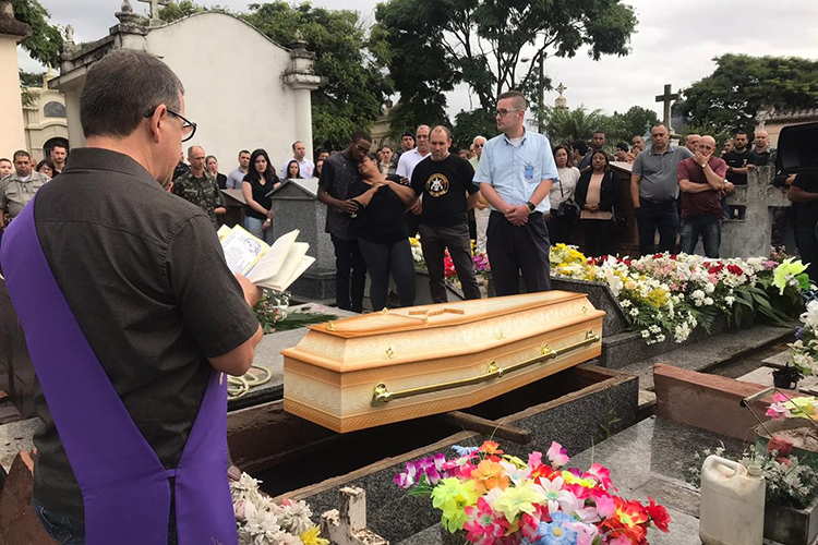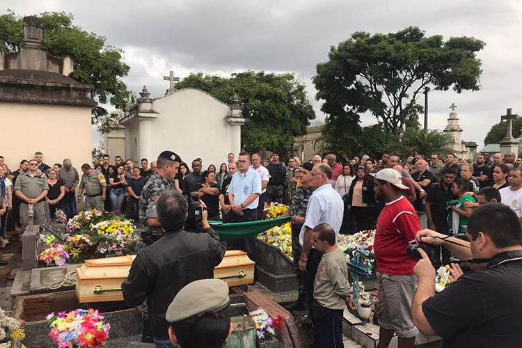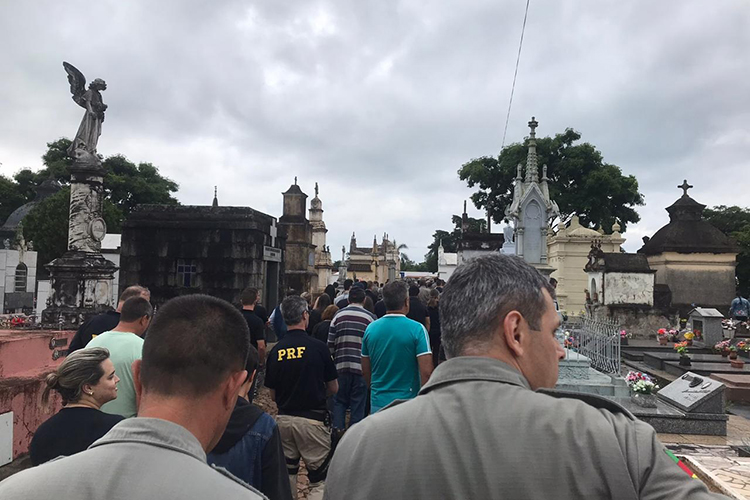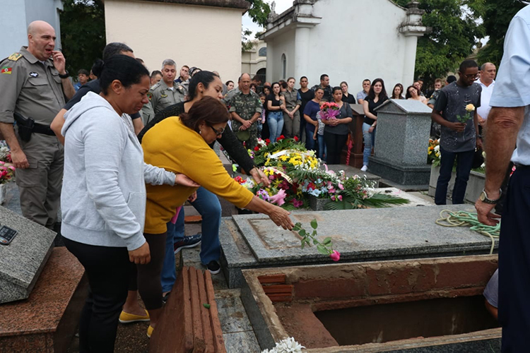 Na saída da capela, os presentes realizaram uma salva de palmas e caminharam em silêncio até o cemitério. O sepultamento foi às 17 horas, no Cemitério Municipal, e contou com homenagens como a marcha fúnebre, realizada pelos policiais do Pelotão de Operações Especiais (POE), que eram colegas de Marciele.