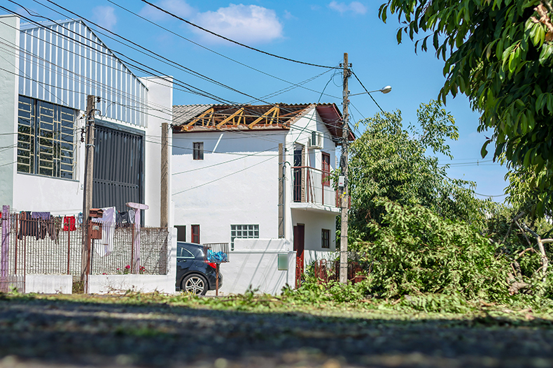 A residência de Tiago não sofreu danos, mas a sua vizinha, Ingrid Schreiner, moradora da Travessa Itaúba, Bairro Independência, estava sozinha em sua casa na hora do temporal e viu as telhas serem arrancadas. A água da chuva acabou caindo sobre o sofá de sua sala, e ela teve que ser ágil para salvar os eletrodomésticos e evitar maiores perdas. Foram momentos de pânico e os danos eram visíveis nessa segunda pela manhã.