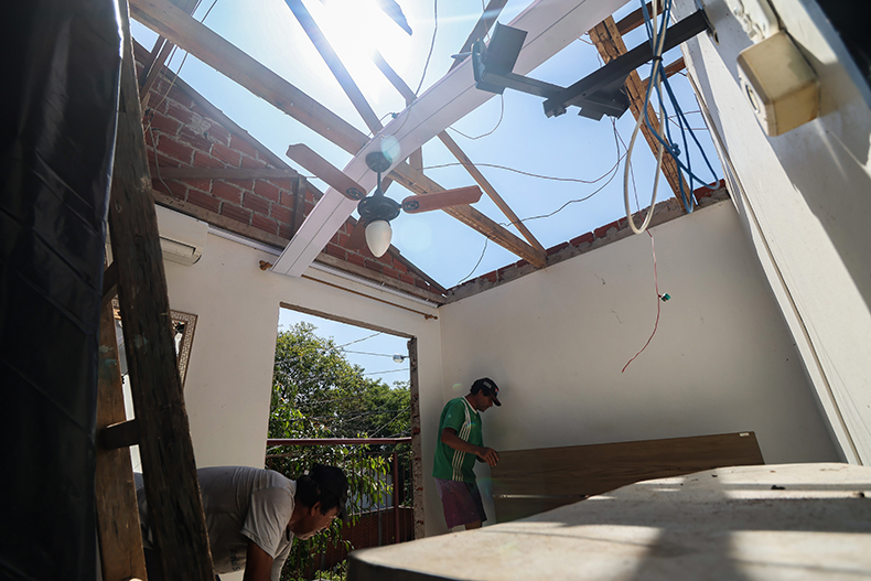 “As escolas e creches foram muito afetadas. Começamos nesta parte para que os pais possam trazer seus filhos para as creches o quanto antes. Agora estamos dentro do bairro porque caíram muitas árvores no meio das ruas e em cima das casas, e muitas residências ficaram destelhadas”, declarou, enquanto acompanhava o trabalho das equipes no Bairro Independência ontem pela manhã.