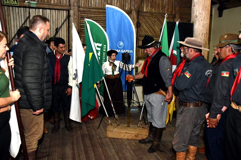 Emocionado, o coordenador do evento neste ano e presidente da Associação Tradicionalista Santa-Cruzense, Tibicuera Almeida, ajoelhou-se diante dos integrantes do grupo Cavaleiros da Integração. Foram eles que buscaram a Chama Crioula em Caxias do Sul. “Me ajoelho diante de vocês, que representam o Rio Grande do Sul, tradição que conquistaram há 32 anos por meio de lei municipal”, bradou.