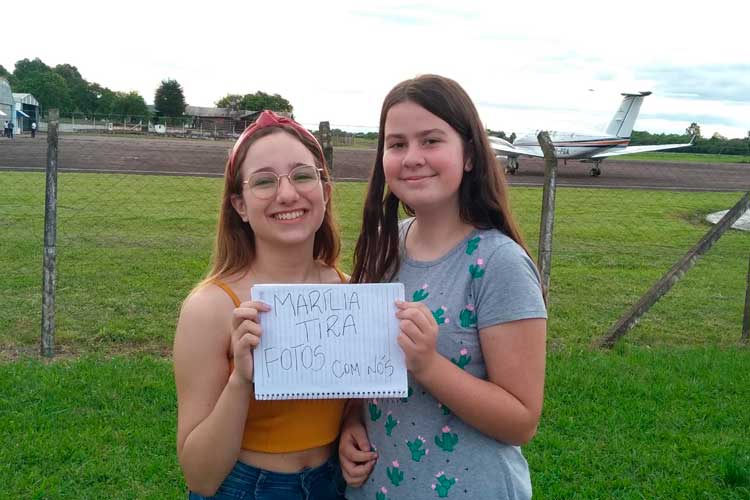 Com uma plaquinha em mãos e as músicas de Marília Mendonça na ponta da língua, as jovens Sofia Frantz, de 12 anos, e Eduarda Beckencamp, de 14, esperam a chegada da cantora no Aeroporto Luiz Beck da Silva nesta sexta-feira, 18. Por volta das 17 horas, elas integravam um grupo de cerca de 15 pessoas que esperavam para ver a artista pousando em Santa Cruz.