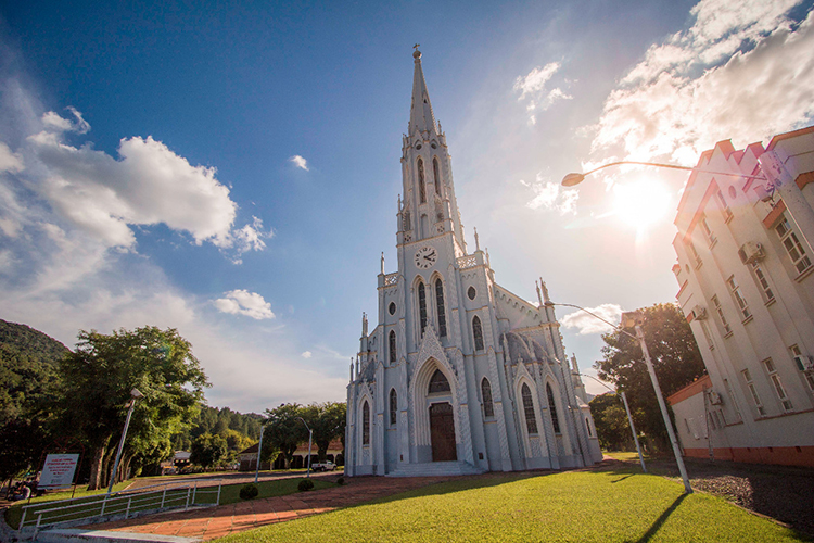 A Igreja Nossa Senhora da Glória conta com decoração repleta de pinturas e estatuária, comum nos templos católicos. Já a Igreja Evangélica de Confissão Luterana se caracteriza pela simplicidade e pelo despojamento do interior. O estilo arquitetônico, conforme Ronaldo Wink, foi resultante de manifestações das próprias comunidades, relacionadas à cultura alemã e à referência com as grandes catedrais góticas no país europeu.