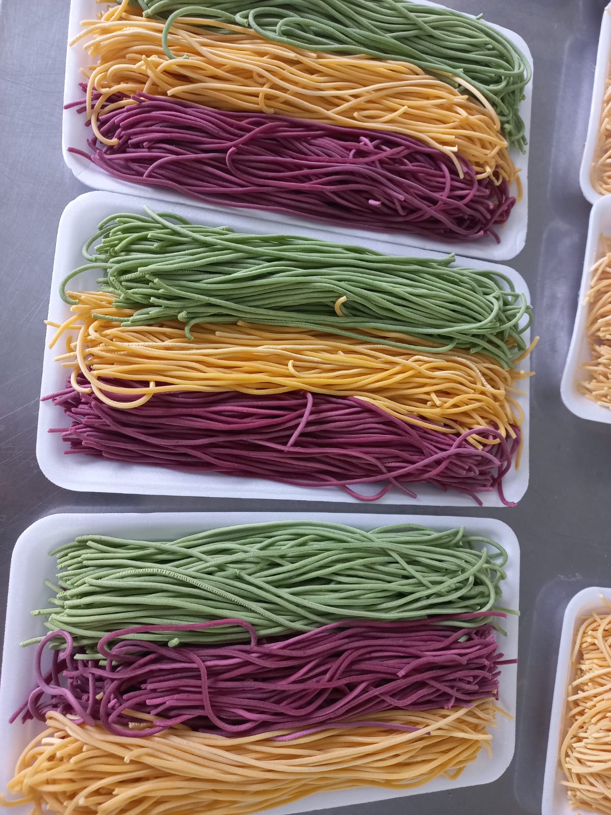 Ceolin contou que os vegetais utilizados nas massas são cultivados em sua propriedade, porém, como não atende toda demanda, tem adquirido os vegetais de outros agricultores familiares do município. Maiquiele acrescentou que, quando se produz algo para a comercialização, a produção é feita de forma escalonada e em maior quantidade, e, nesse caso, Leandro e a família produzem esses itens para consumo familiar, por este motivo a agroindústria ainda tem adquirido os vegetais frescos de outros agricultores locais, enquanto ainda não produzem o suficiente, e garantiu que a família já está organizando o plantio em maior quantidade para suprir a demanda da produção. Ceolin destacou que as massas com vegetais têm a mesma base das massas tradicionais já produzidas pela agroindústria: ovos e farinha. “As massas coloridas apenas acrescentam à base tradicional, os vegetais frescos, produzindo um alimento rico em vitaminas e nutrientes, proporcionando maior valor nutricional, além do colorido que se mantém mesmo após o cozimento”.
