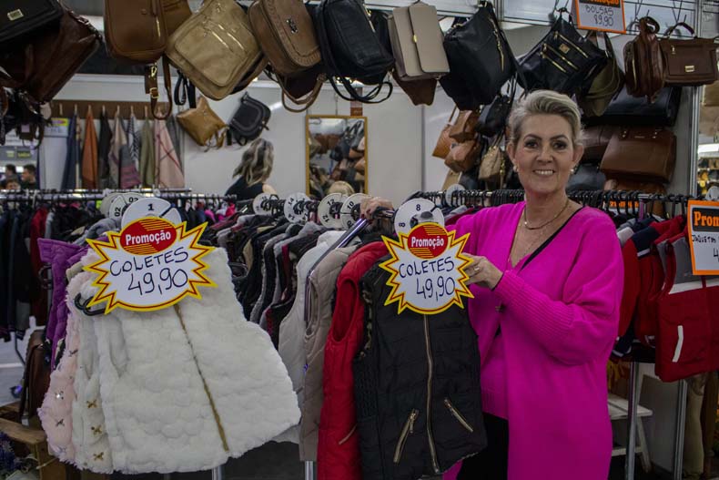 Ela afirma que atendeu consumidores de várias cidades mais distantes da região. “As vendas aumentaram para todos. Esse sentimento é geral aqui [no espaço do ginásio municipal poliesportivo Adroaldo Hickmann]”, comemorou. A projeção de Josiane é de um incremento de 10% no volume de vendas, na comparação com a edição anterior. Ela trabalha com linha infantil de inverno, bolsas e mantas.
