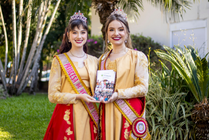 As soberanas de Vera Cruz estiveram na tarde dessa segunda-feira, 22, na Redação Integrada da Gazeta Grupo de Comunicações. O motivo da visita foi a divulgação da 14ª Feira da Produção, que começa nesta quarta, 24, e vai até domingo, 28, no Parque Municipal de Eventos. O maior evento do calendário anual da Capital das Gincanas terá ampla programação cultural, shows, parque de diversões, diversas opções gastronômicas produzidas pelas agroindústrias locais e muito mais. Tudo isso com um diferencial: acesso gratuito em todos os dias e horários.