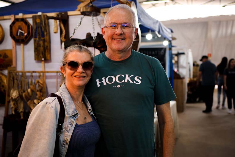 De Santa Cruz do Sul, estavam Angelita e Leandro Assmann, de 56 e 54 anos, respectivamente. A empresária e o médico foram acompanhados de mais um casal de amigos para aproveitar o feriado e conferir os produtos em madeira de um expositor que haviam conhecido em Santa Cruz, durante a 9ª Construarte e 10ª Multifeira. “Esse expositor é de Arroio do Meio. Pegamos o contato dele em Santa Cruz e agora viemos conferir, com mais tempo, o trabalho que ele desenvolve”, explica Leandro, destacando, assim, a importância das feiras para a realização e prospecção de negócios.