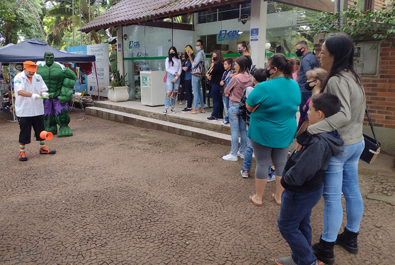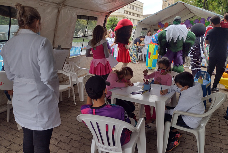 Eduarda também aprovou o evento. “Está muito legal, com muita diversão e descontraído”, avaliou. Após a vacina, as crianças eram encaminhadas para uma tenda onde cumpriam o período de observação após a aplicação. No local, materiais para desenhar e pintar, livros e a animação da Trupe Teatral e Dr. Só Risos.