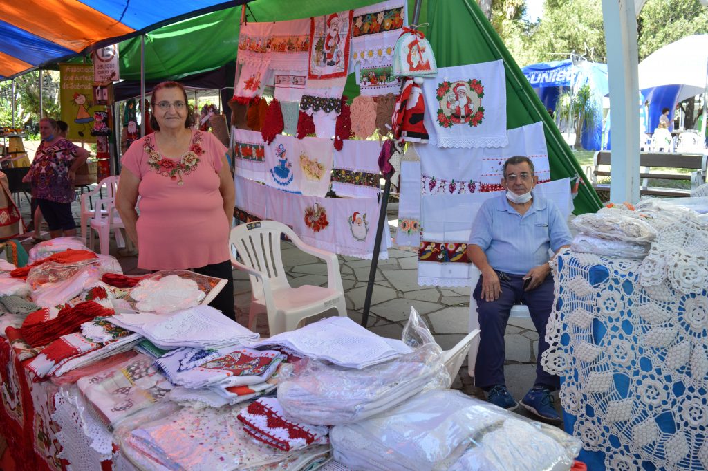 Entre os expositores da Ferarte esteve a artesã Lizélia Giacomelli, de Sobradinho, que participa de muitas feiras no Estado. “Há quase cinquenta anos trabalho com artesanato. É muito bom participar das feiras, pois podemos mostrar o nosso trabalho. Infelizmente a pandemia não permite que seja como em outros momentos em relação às vendas, mas está bom, sempre vendemos alguma coisa. É uma vitrine, então as pessoas veem e depois lembram e me procuram”, mencionou a artesã que produz uma ampla variedade de artesanatos como panos de prato, toalhas de mesa, banho, peças em crochê, macramê e também detalhes com pintura.