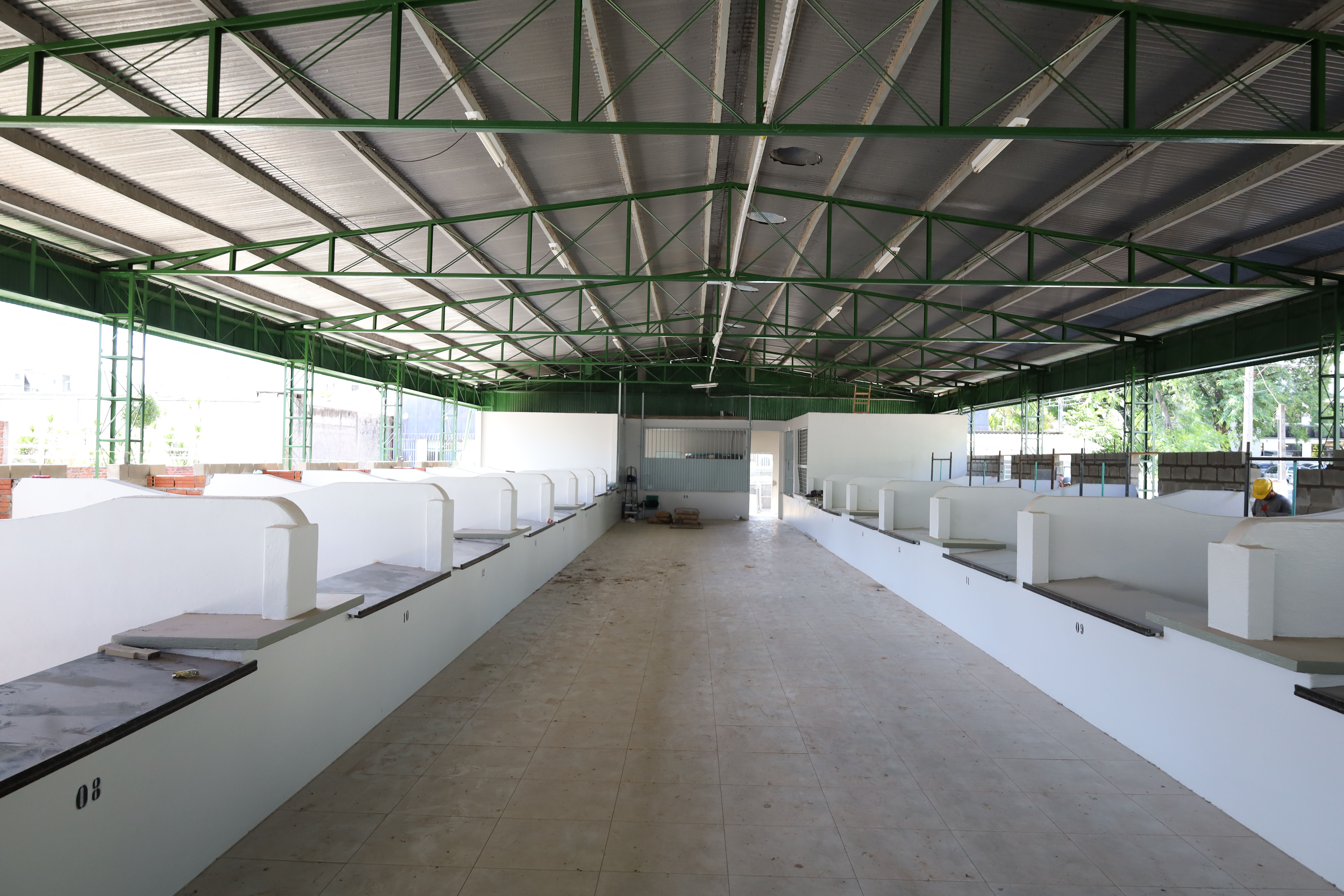 No momento, os trabalhadores atuam no fechamento da feira e na instalação de pontos de água nas bancas dos feirantes. Além disso, a parte da troca de pisos já está quase finalizada. Na sequência, serão realizadas a instalação de esquadrias e a reforma elétrica.