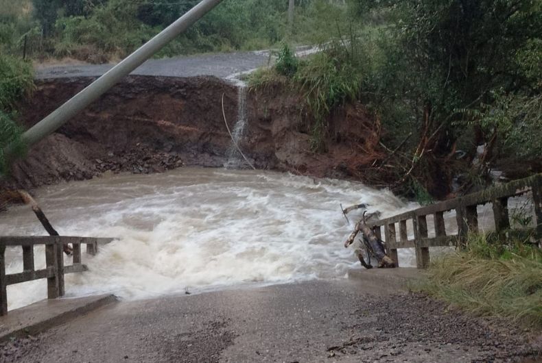 Forte correnteza destruiu ponte sobre o Rio Pardinho na divisa com Boqueirão do Leão. Crédito: Edson Müller/Defesa Civil