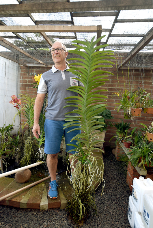 Entre os expositores estão o santa-cruzense Carlos Junges, vice-presidente da associação, e sua esposa, Rosane, que cultivam orquídeas desde a década de 1990. “Tínhamos o hábito de levar as crianças às exposições de orquídeas e já tínhamos algumas plantas em casa. Com o tempo, conhecemos outros apaixonados pela orquidofilia e logo depois me tornei membro da associação”, conta Carlos.