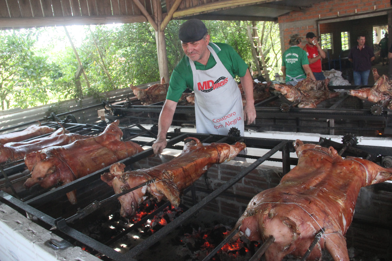 O 19º Festival Gaúcho do Porco no Rolete deve receber cerca de 1,5 mil visitantes até a tarde deste domingo, 11, no pavilhão da comunidade de Quarta Linha Nova, no interior de Santa Cruz do Sul. O preparo dos 40 leitões – que somam 800 quilos de carne – começou ainda na manhã deste sábado, 10, com o tempero das carnes que levam uma mistura de sal temperado, alho, cebola, manjerona, orégano e sálvia. Para chegar ao ponto ideal, os porcos são assados por uma média de 6 horas, até atingir a textura de “pururuca”, considerada um dos diferenciais do prato.