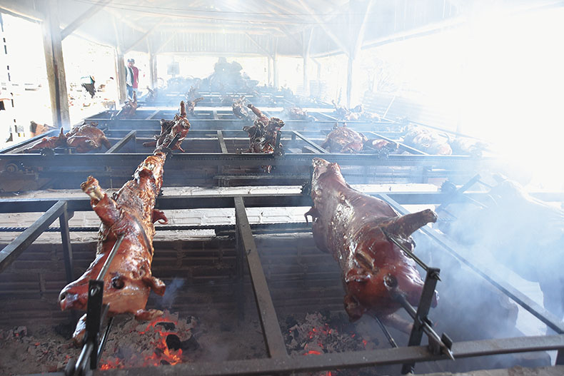 Carne é assada durante cinco horas, até ficar pronta para o almoço, às 11h30