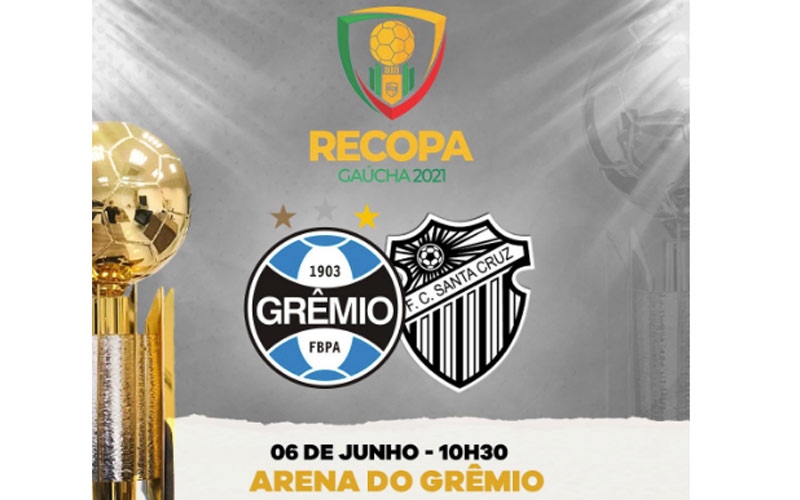 O Santa Cruz vai enfrentar o Grêmio no domingo, 6, às 10h30, na Arena, em Porto Alegre, em partida que vale o título da Recopa Gaúcha. O duelo coloca frente a frente o campeão gaúcho de 2020 e o campeão da Copa FGF – Troféu Ibsen Pinheiro.