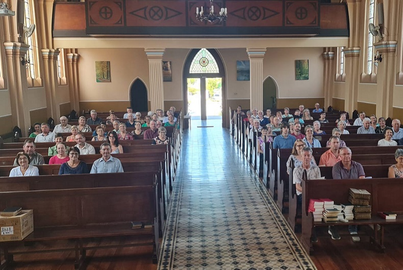 Igreja Evangélica do Centro recebeu bom público na manhã do feriado para o único culto ainda celebrado em língua alemã | Foto: Astor Bublitz/Divulgação