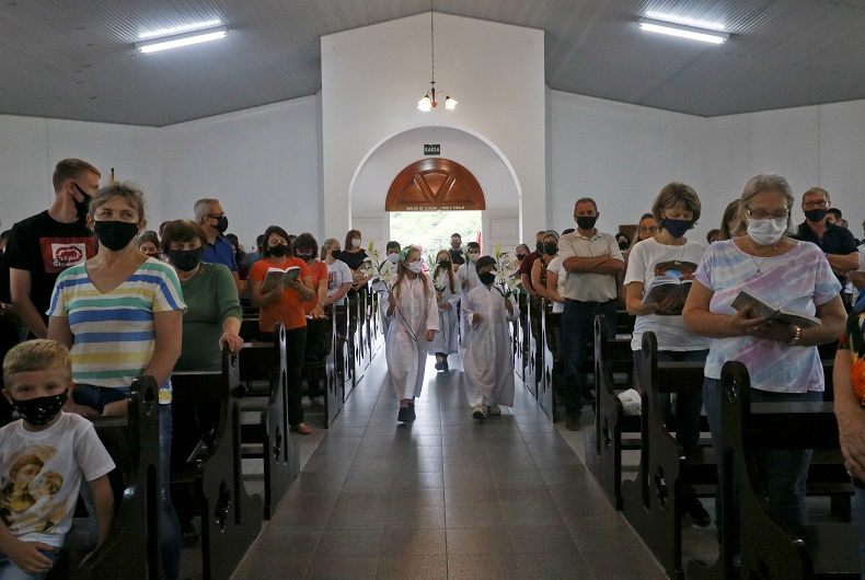 Ele enfatizou o apoio da Brigada Militar, que também foi abençoada, quando chegou à capela, onde foi celebrada missa pelo padre Fabrício Niederle. “No ano passado, por causa de um momento mais forte da pandemia, não pôde acontecer a missa”, recorda uma das organizadoras, Silvia Jacobs. Ela comemora a participação de pessoas de diferentes idades. “Tinha desde os pequenos até pessoas com muletas acompanhando. Temos que fazer algo pelo nosso povo e o momento é esse.”