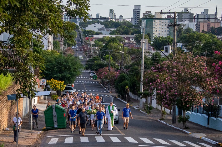 Em uma tarde de demonstrações de fé, dezenas de fiéis participaram da Procissão de Nossa Senhora de Lourdes, realizada no sábado, 10, pela Comunidade Santo Inácio de Santa Cruz do Sul. O evento teve início às 18 horas, quando os fiéis partiram em caminhada da igreja até a Gruta de Nossa Senhora de Lourdes, que fica na Casa de Retiros Loyola. O trajeto normal da procissão seria pela Rua Gaspar Silveira Martins, mas em razão do calor os fiéis seguiram por um atalho pela Rua da Gruta, evitando a subida acentuada.
