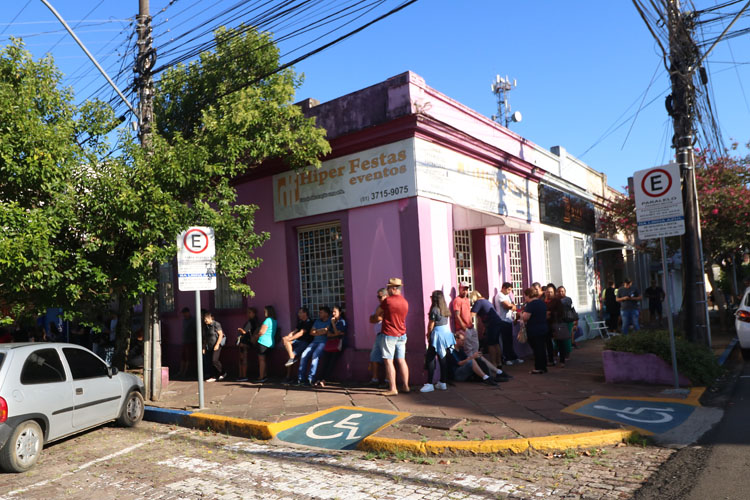 Saída de frente do Cartório, aproximadamente do meio da quadra da Rua Ernesto Alves, a fila de pessoas sobe a Rua Ramiro Barcelos e ainda dobra na Rua Venâncio Aires. Às 8h15 desta sexta-feira, 28, antes mesmo da abertura do Cartório, a fila já passava da parada de ônibus na quadra entre a Júlio de Castilhos e a Ramiro. A distância, nesse horário, era de cerca de 200 metros.