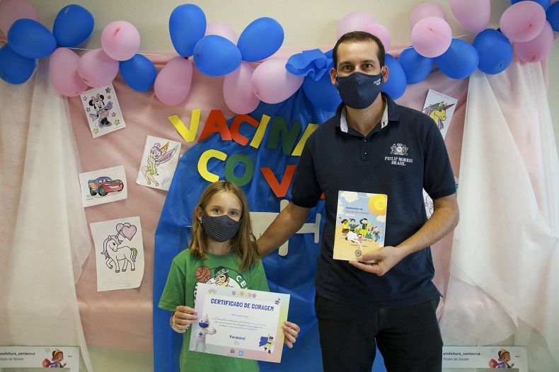 Uma das unidades que contaram com a ação foi a Estratégia de Saúde da Família (ESF) do Bairro Arroio Grande. No local, as crianças que se vacinaram foram encorajadas pela personagem da Boneca Lol. Elas ainda ganharam o certificado de que tiveram coragem para receber a aplicação. Uma das tantas crianças valentes foi Manuella Lehmen, de 8 anos. Acompanhada do pai Rafael Lehmen, ela recebeu a primeira dose contra o coronavírus. “Saí do trabalho às 17h15 e deu tempo de vir com ela. Com essa flexibilização de horário, aproveitamos”, contou Rafael.