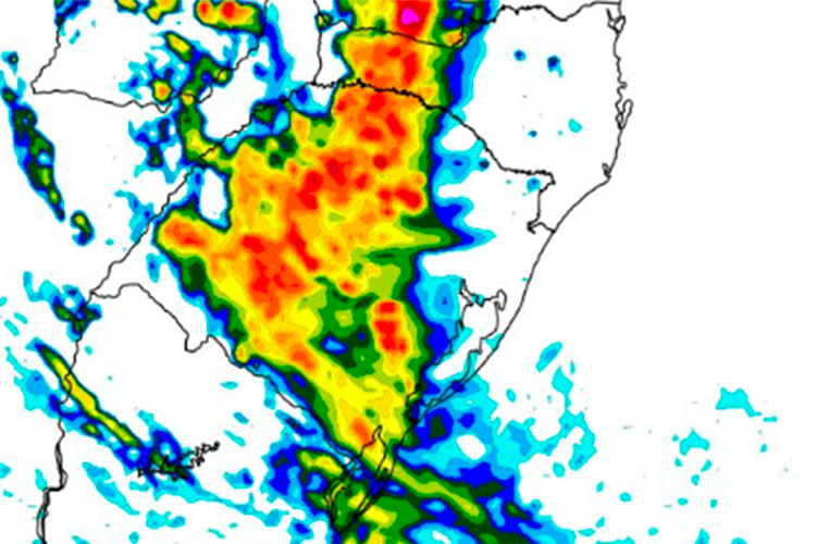 A Climatempo aponta que a intensificação de um sistema de baixa pressão atmosférica sobre o Paraguai vai influenciar diretamente na região Sul, com chuvas fortes e volumosas, além de ventos acima de 90 quilômetros por hora, principalmente no sábado, 24.