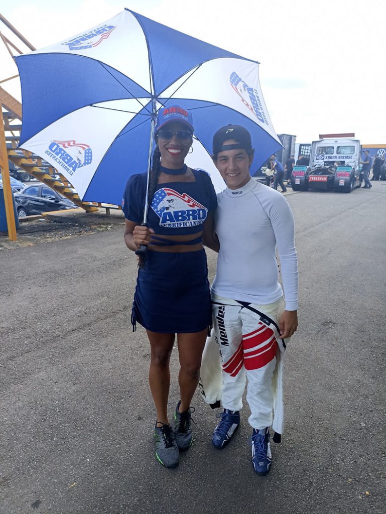 Ainda com flashes do final de semana no autódromo de Santa Cruz, na foto ao lado estão a promoter Amanda Santos e o piloto Lucas Mendes, de Cuiabá, oriundo do Kart e que, com apenas 15 anos, já fez sua estreia como gente grande na GT Sprint Race, aos cuidados de Ricardo Fávero, que é um especialista em lançar pilotos.