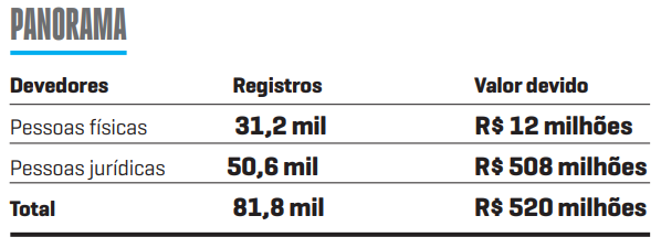 A maior parte do passivo refere-se ao Imposto sobre Circulação de Mercadorias e Serviços (ICMS). Ao todo, 47 mil inscrições têm dívidas ligadas ao tributo, totalizando mais de R$ 507 milhões. Outros 34,9 mil cadastros apresentam irregularidades no Imposto sobre a Propriedade de Veículos Automotores (IPVA), que atinge R$ 5,6 milhões. Há ainda 33 registros em débito com o Imposto sobre a Transmissão Causa Mortis e Doação (ITCD).