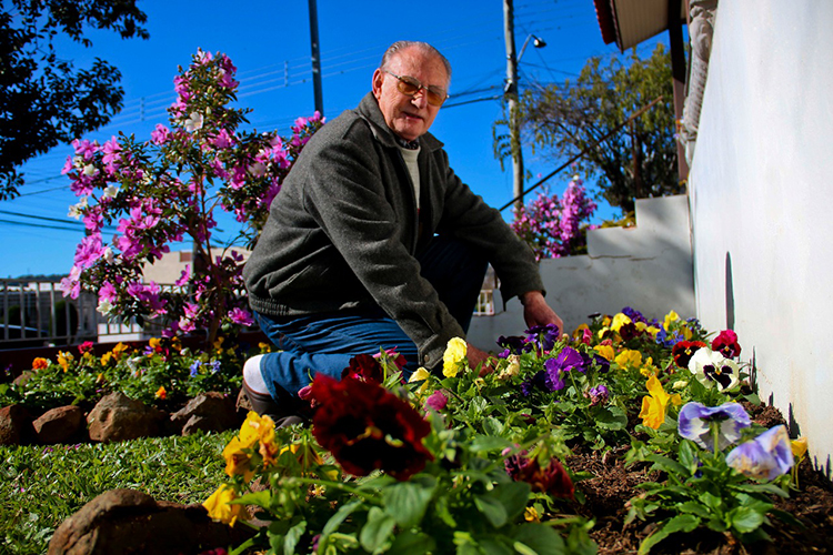 Comerciante conhecido do Centro de Santa Cruz, ao se aposentar ele trocou o balcão da tradicional Farmácia Cruzeiro pelos canteiros de casa. Além de plantar amor-perfeito, ensina que florir faz bem ao coração. A falecida esposa, Noemira, apreciava muito o plantio de flores, atividade que desde sempre ele não delega a ninguém. “Gosto de flores e de música. As clássicas e instrumentais são as minhas favoritas. Isso tudo faz muito bem para a gente.”