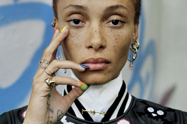 Aos 25 anos, a modelo aparece com um visual diferente dos padrões de beleza, cheia de sardas no rosto, careca e com dentes tortos. Com pais no ramo da fotografia de moda e agenciamento de modelos, Adwoa tem um histórico de abuso de drogas e de doenças mentais.