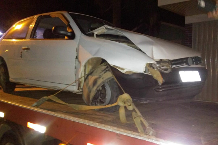 Os policiais fizeram buscas pelo município e encontraram o condutor trafegando com o veículo na localidade de Pinhal. Ao perceber a presença da Brigada, o homem fugiu em alta velocidade até que colidiu no meio fio da via pública e depois em uma mureta.
