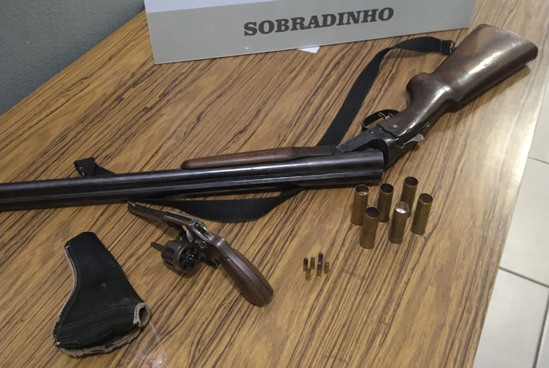 Foram apreendidos um revólver calibre 22 e uma espingarda Rossi, calibre 20. Ambas as armas estavam carregadas. O suspeito, que tem extensa ficha criminal, foi preso em flagrante por porte ilegal de arma de fogo e apresentado na Delegacia de Polícia. Após o registro, foi levado ao Presídio Estadual de Sobradinho.