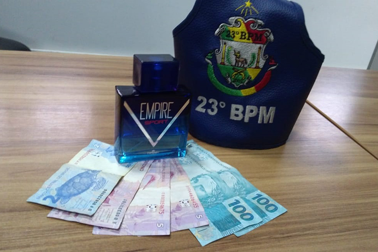 Os policiais foram até o local e a vítima relatou ter visto o suspeito sair da residência com uma quantia de dinheiro e um perfume. O homem foi detido pelo proprietário na residência de um vizinho e a BM foi acionada. Com ele, havia a quantia de R$ 217,00 e um frasco de perfume.
