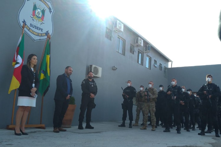 A equipe da Força de Cooperação Penitenciária do Departamento Penitenciário Nacional (Depen) se apresentou na manhã desta terça-feira, 28, para atuar junto da 8ª Delegacia Penitenciária Regional por tempo indeterminado. Segundo o superintendente da Susepe, Everson Munhoz, a equipe com 31 agentes vem para auxiliar nos procedimentos e protocolos de saúde frente ao combate ao coronavírus dentro dos presídios.