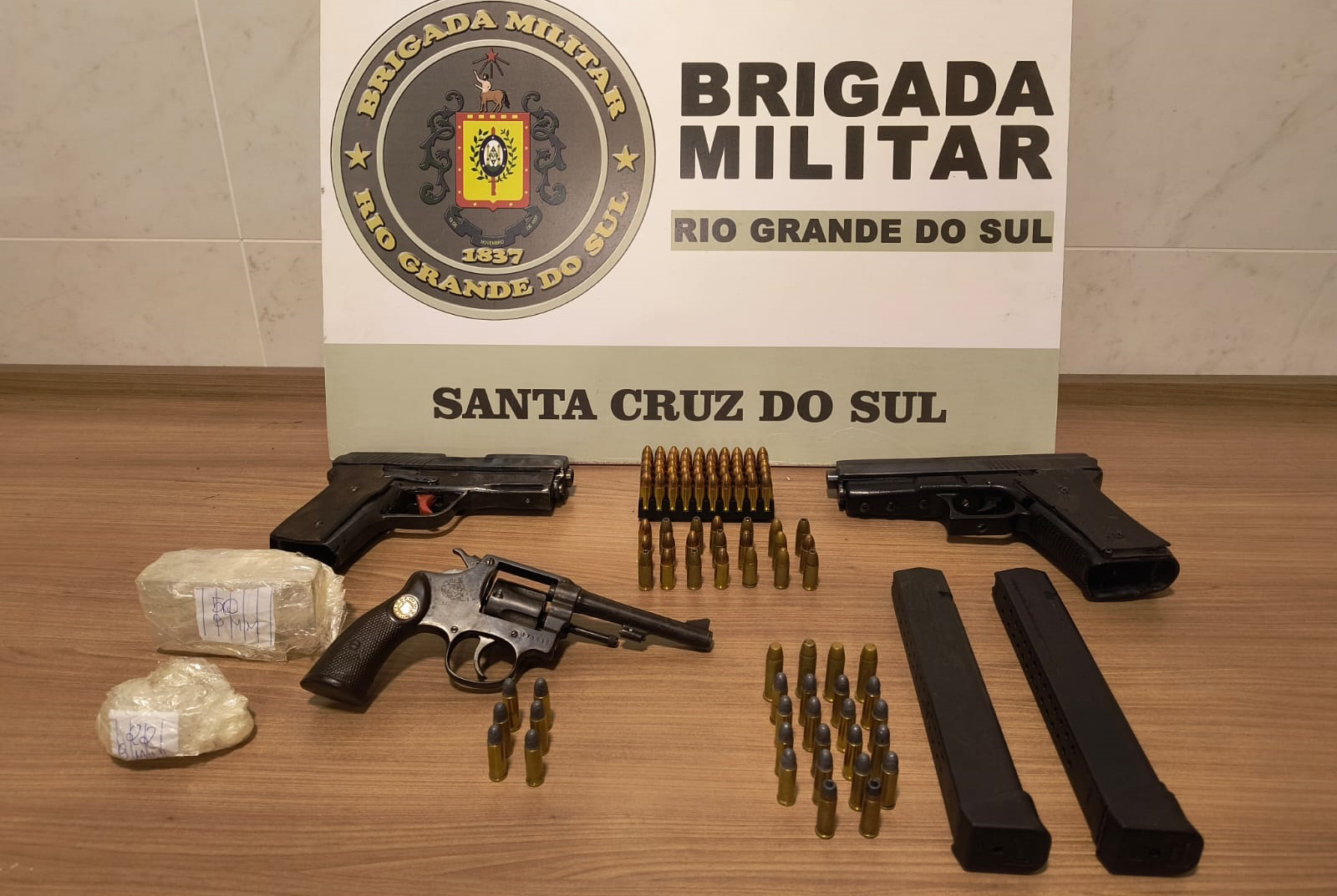 A Força Tática da Brigada Militar (BM) apreendeu um farto material bélico na noite desta sexta-feira, 12, em Santa Cruz do Sul. Após o Setor de Inteligência do 23º Batalhão de Polícia Militar (23º BPM) apurar informações de que um jovem de 17 anos, filho de um apenado da facção Os Manos envolvido em ocorrências de homicídio e tráfico de drogas no município, iria receber armamento, os policiais da divisão de elite da BM realizaram diligências na Zona Sul da cidade.