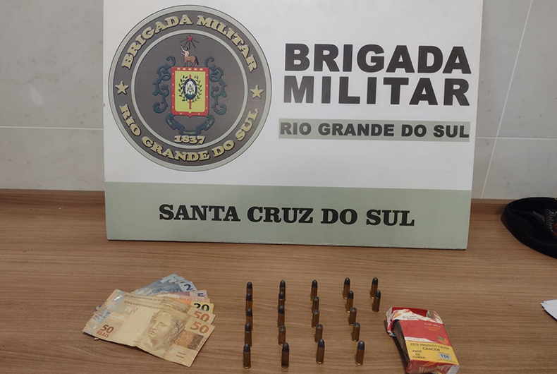 Ao abordar o homem, os policiais militares localizaram com ele uma carteira de cigarro contendo 22 munições calibre 32 marca CBC e R$ 164 em dinheiro. O suspeito tinha antecedentes por porte ilegal de arma de fogo, posse de drogas e homicídio. Ele foi encaminhado à delegacia de polícia onde a ocorrência foi registrada como flagrante pelo delegado plantonista.