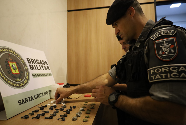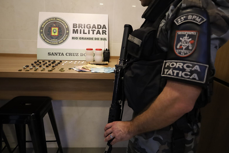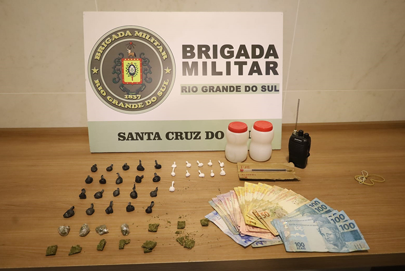 A Força Tática da Brigada Militar prendeu um jovem de 19 anos, na tarde desta sexta-feira, 11. A ação foi na Rua Gustavo Doss, na esquina com a Madre Teresa de Calcutá, no Bairro Santa Vitória. Com o rapaz, também foi apreendida uma quantidade de droga pronta para a comercialização.
