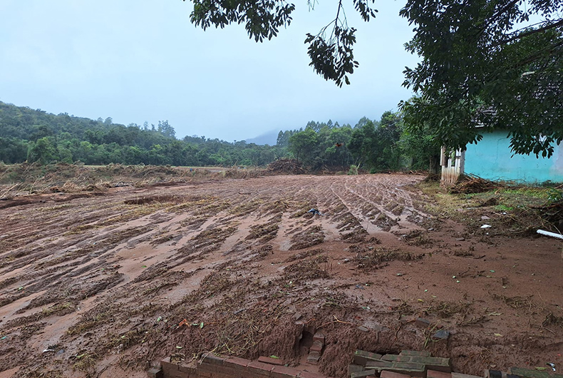 Lavoura atingida pela enchente do dia 30/04/2024 em Sinimbu | Foto: Arquivo/Prefeitura de Sinimbu