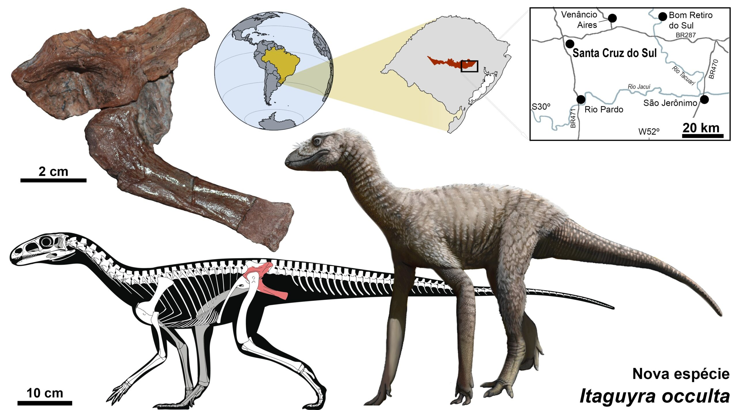 Liderado pelo paleontólogo e doutor pela UFRGS Voltaire Paes Neto, que realiza o pós-doutorado no Museu Nacional, o estudo descreve fósseis de uma nova espécie de silessauro, um grupo de répteis característicos do período Triássico. A principal contribuição do artigo está na descrição de dois novos ossos da cintura (um ílio e um ísquio) de um animal do grupo dos silessaurídeos, que foi batizado pelos pesquisadores como Itaguyra occulta.