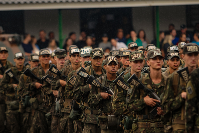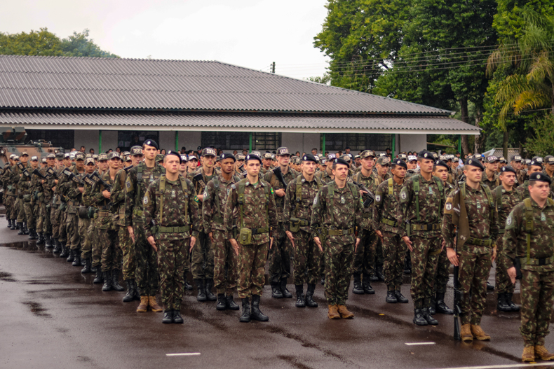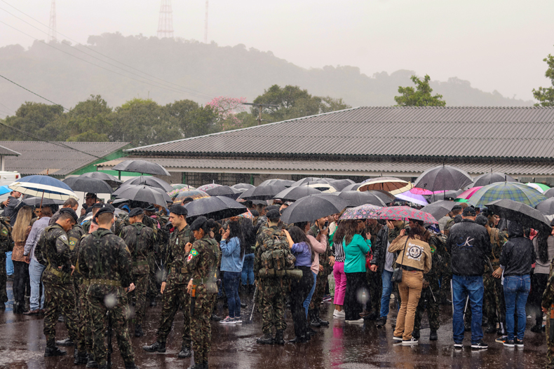 O fim da manhã chuvosa desta sexta-feira, 12, marcou a entrega da boina preta aos 251 soldados incorporados neste ano no 7º Batalhão de Infantaria Blindado (7º BIB) de Santa Cruz do Sul. O momento marcou a conclusão do período de instrução do combatente básico na formação militar. A solenidade, realizada no Pátio Duque de Caxias do Regimento Gomes Carneiro, reuniu militares, familiares e autoridades. O evento também foi marcado pelo Dia do Serviço de Intendência, comemorado em 12 de abril.