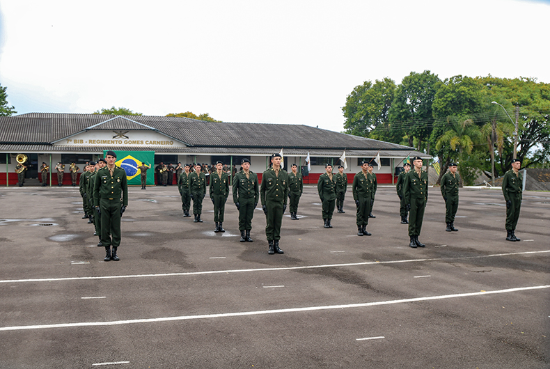 Em cerimônia emocionante, o 7º Batalhão de Infantaria Blindado (7º BIB) Regimento Gomes Carneiro realizou na manhã deste sábado, 4, a formatura dos alunos integrantes do Núcleo de Preparação de Oficiais da Reserva (NPOR), que receberam a declaração de aspirantes a oficial da reserva. A solenidade teve início às 10 horas, no Pátio Duque de Caxias, e contou com a presença de autoridades civis e militares, bem como dos familiares e amigos dos 20 alunos da turma Bicentenário da Independência do Brasil, que foram conduzidos pelo capitão Lucas Castilhos Silva, o instrutor-chefe.
