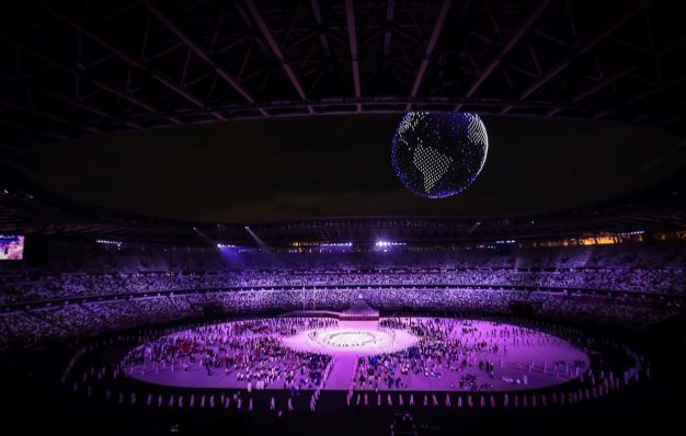 A execução de “Imagine”, música de John Lennon e Yoko Ono, enquanto uma frota de 1.824 drones pairava sobre o Estádio Olímpico formando uma impressionante versão tridimensional do logotipo da Tóquio-2020 e, em seguida, um globo terrestre, foi outro momento bastante emocionante.