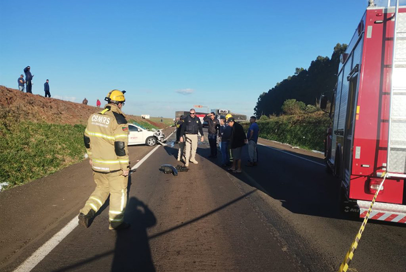 Um grave acidente com óbito envolvendo cinco veículos foi registrado na manhã desta quarta-feira, 7, em Passo Fundo. O fato aconteceu na BR-285. Os veículos envolvidos foram três carros, um caminhão e uma carreta.