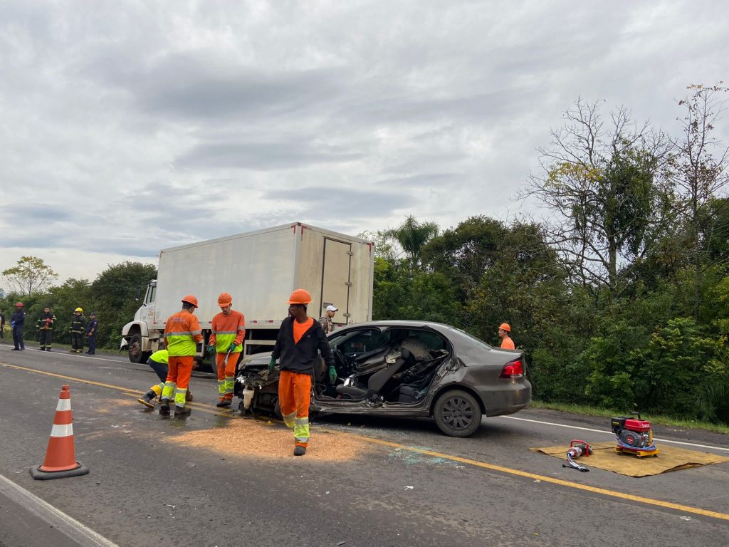 De acordo com informações do Comando Rodoviário da Brigada Militar, um caminhão carregado de fumo, placas de Bom Princípio, seguia no sentido Venâncio Aires/Santa Cruz quando o motorista, para evitar a colisão frontal com um Voyage, com placas de Turuçu, que teria invadido a pista contrária, precisou desviar para o acostamento e acabou tombando. Um Pálio, com placas de Caxias do Sul, que seguia atrás do caminhão, acabou colidindo no veículo de carga ao também tentar evitar a colisão. Na sequência, o Voyage bateu em um outro caminhão, que seguia no sentido contrário.